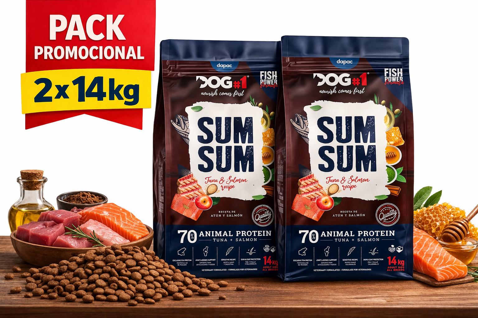Alimento para perros adultos a base de atún y salmón SUM SUM